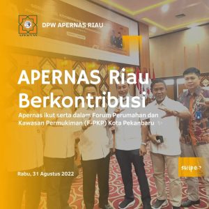 DPW APERNAS RIAU ikut berkontribusi dalam Forum Perumahan dan Kawasan Pemukiman (F-PKP) Kota Pekanbaru yang diadakan di Aula Gedung Utama, Wilayah Perkantoran Walikota (Rabu, 31 Agustus 2022).